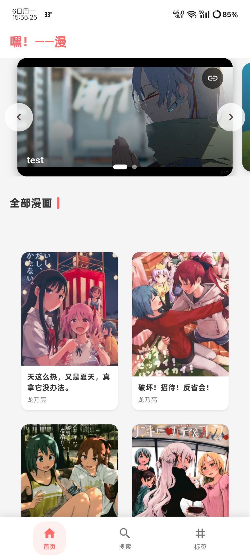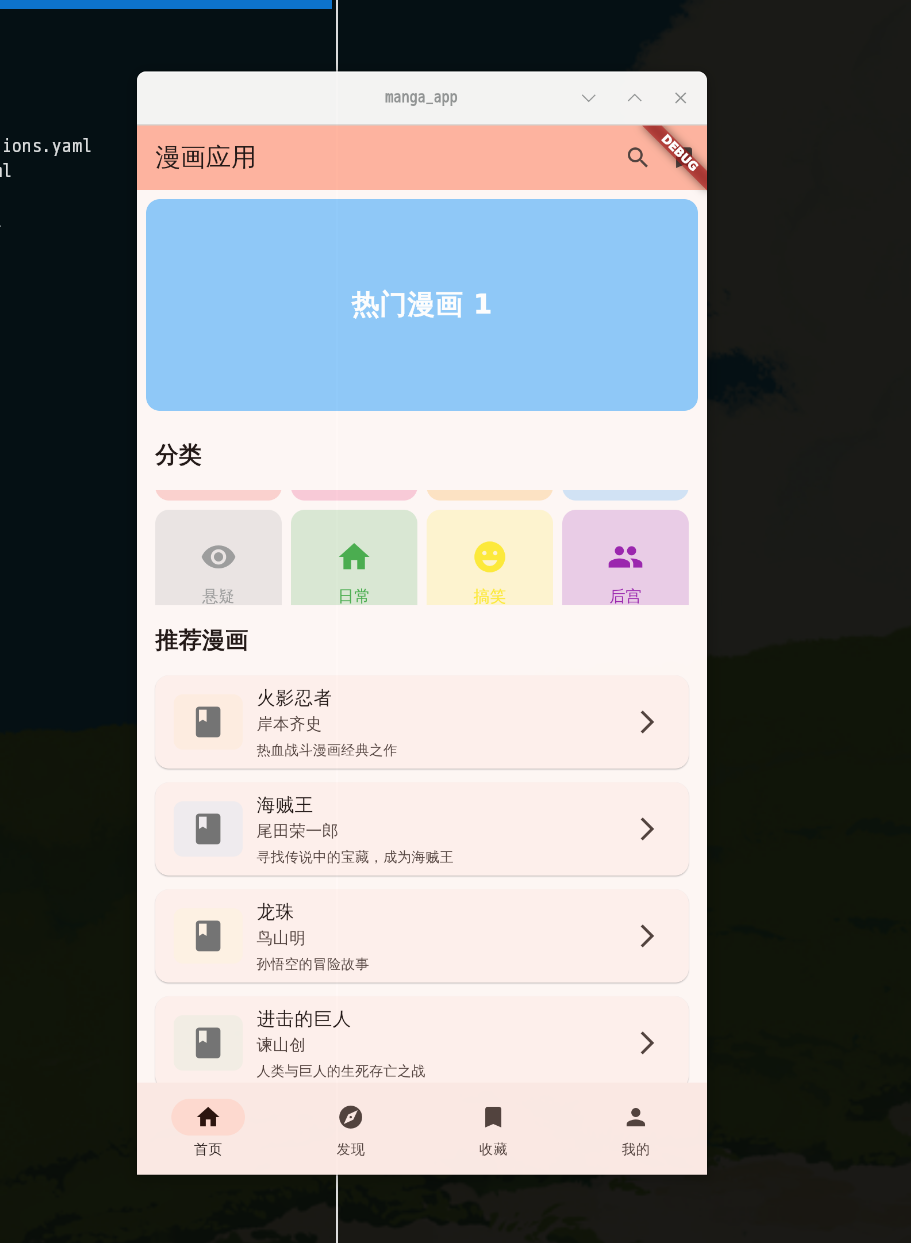 这个呢是完全由ai自己写的,我的提示词写的也很简单,就是:写一个漫画app的主页面示例